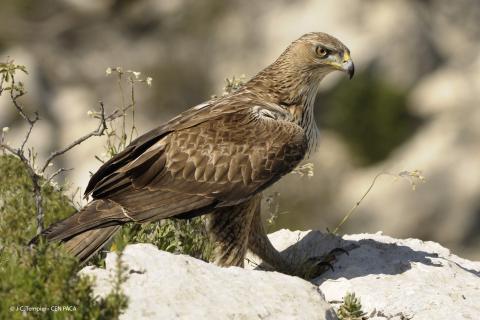 | Des rapaces, dont l’Aigle de Bonelli © J.C. Tempier - CEN PACA - et le Circaète Jean-le-Blanc notamment, y chassent petits mammifères, oiseaux ou reptiles. |