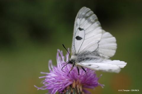 Le Semi-apollon de Saint-Cassien – Parnassius mnemosynecassiensis © J.C. Tempier - CEN PACA – sous-espèce endémique de la Sainte-Baume. Cette population très isolée accuse une diminution importante de ses effectifs dont la cause la plus plausible serait le réchauffement climatique.
